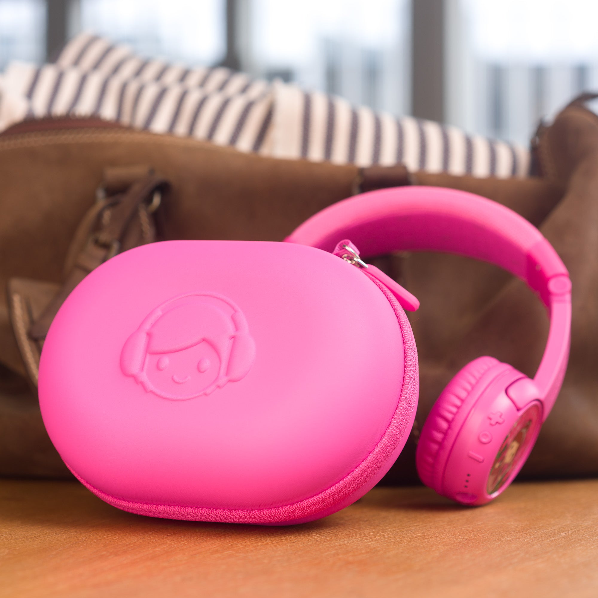 The hard-shell case is designed to keep your BuddyPhones protected and tidy while traveling. The BuddyCase has a sleek, compact design that fits easily into small carry-ons. Available in 6 fun colors matching the Explore+ and Play+, the BuddyCase is an ideal travel companion to your BuddyPhones.