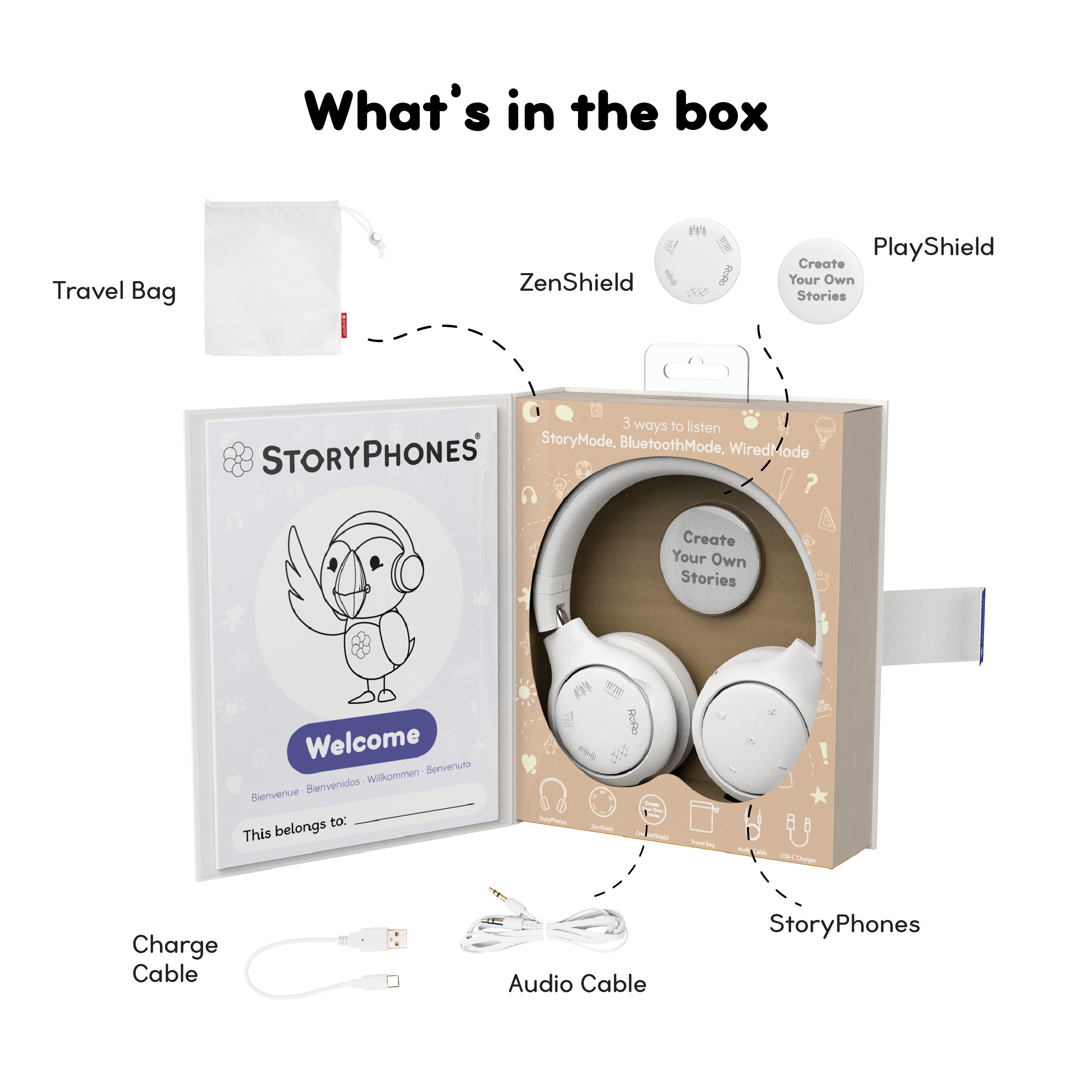 StoryShields come in English, French, German, Spanish, and many more languages — so your child can enjoy stories in the language they love or even learn a new one!