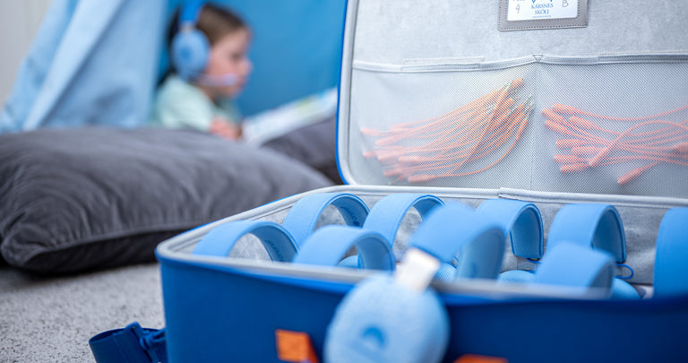 The StudyCase provides convenient storage for up to 10 StudyPhones, ensuring easy organization and accessibility of audio resources in educational settings.